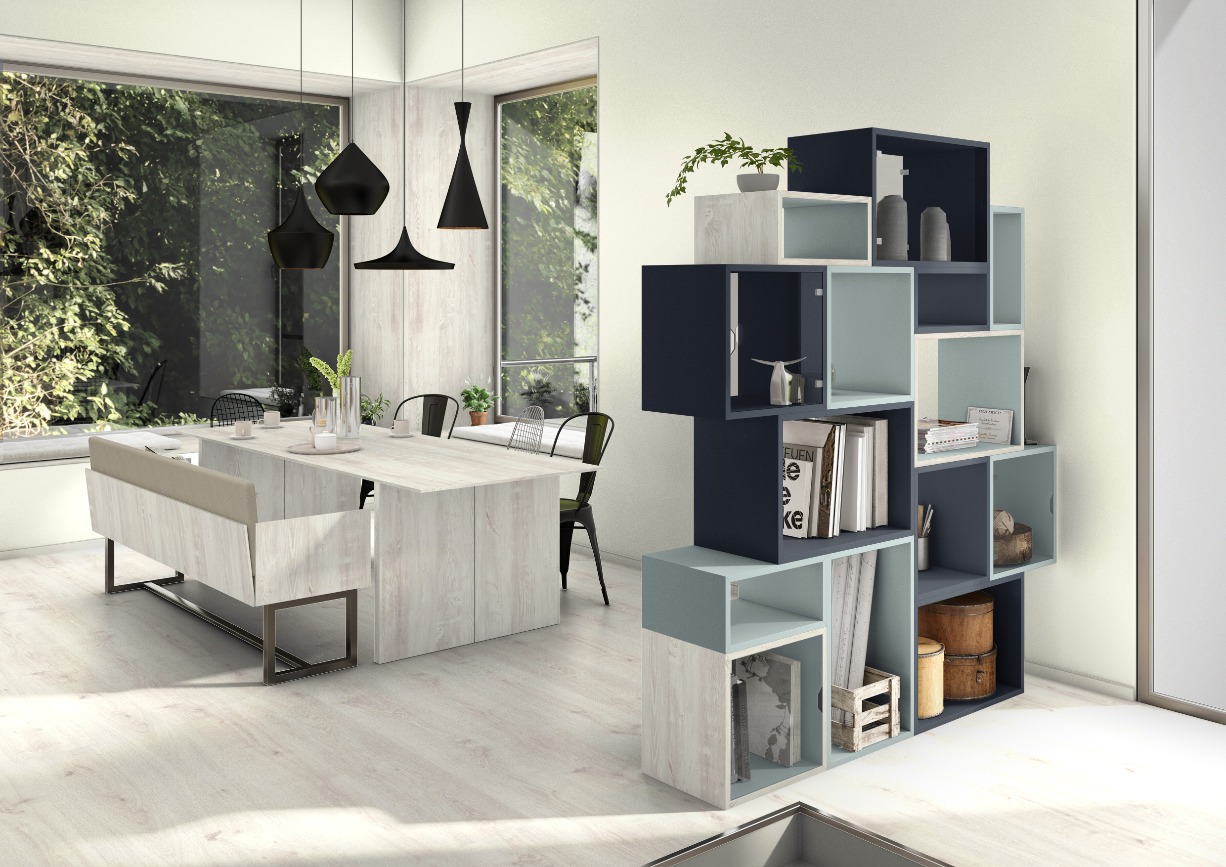 ПДЧ с меламиново покритие са подходящи за хоризонтални и вертикални приложения в мебелния и интериорния дизайн, например за лицеви панели, рафтове, гардероби или облицовки на стени.